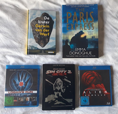 In de Mediamarkt ging ik voor de steelbook van Sin City 2 - ja, de inferieure film - maar zo heb ik de collectie compleet en 't was maar 2.99€. Alien: Romulus werd online gekocht omdat het zo goedkoper was dan in de winkel én deze Duitse uitgave heeft ook Nederlandse ondertiteling, wat hield mij dus tegen? Logan's Run - ook een Duitse editie - werd gekocht voor een projectje dat hier ooit wel eens op deze blog zal verschijnen.